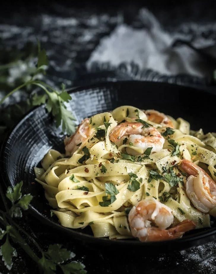 Тальятелле с лососем и креветками