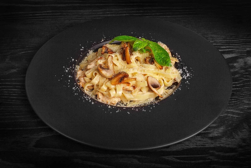 Тальятелле с грибами и ветчиной