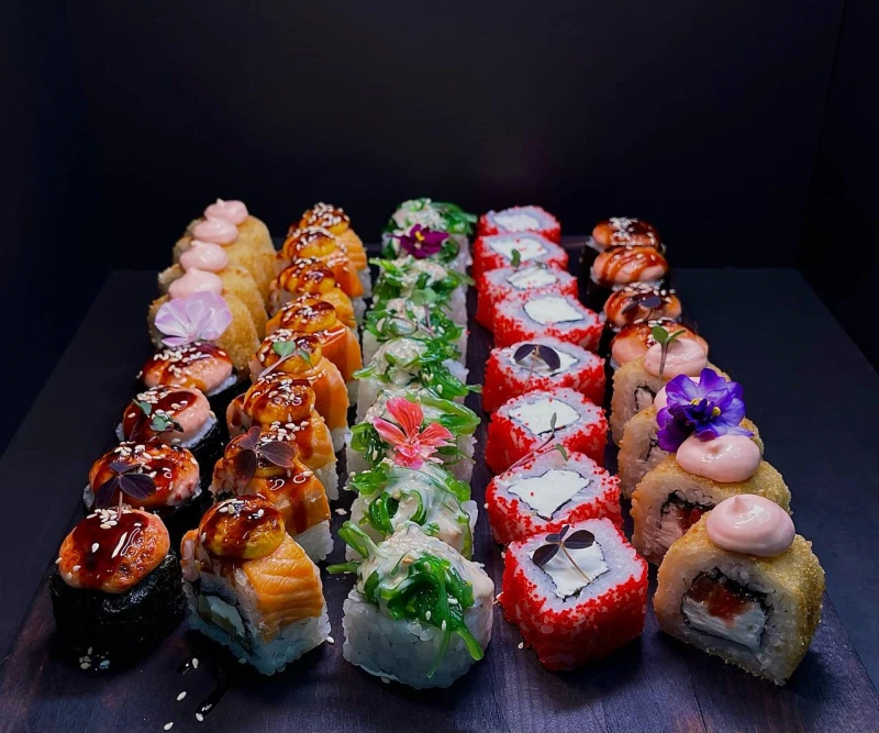Состав: Филадельфия хот Оливье ролл Чукка ролл Каори Татами 5 порций\ 40 кусочков